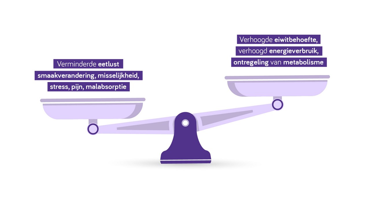 Onderzoek laat zien dat de oncologische patiënt een verhoogde behoefte heeft aan energie en eiwit.7 Daarnaast is de inname van omega-3 vetzuren over het algemeen laag en is er vaak sprake van een lagere vitamine-status (met name vitamine D).6,8