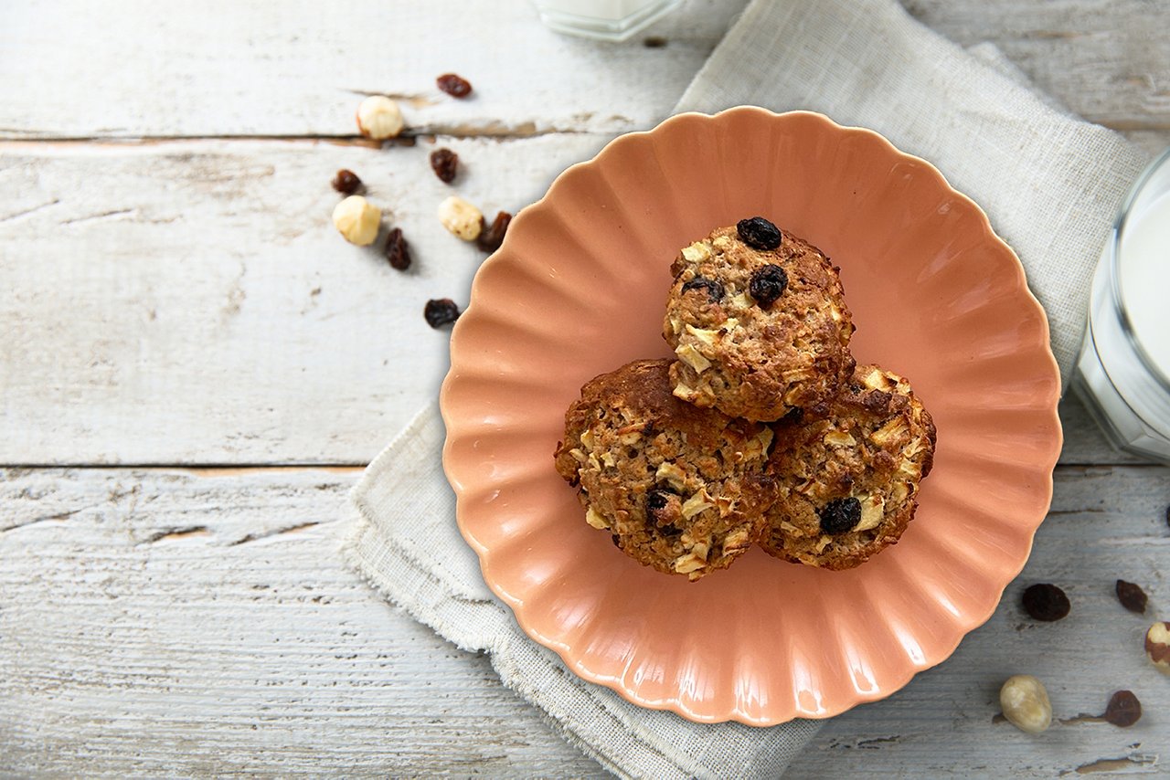 - Doe de havermout, bloem, bakpoeder, 2 schepjes NutriniDrink poeder, snufje kaneel en zout in een kom. Roer dit door elkaar.