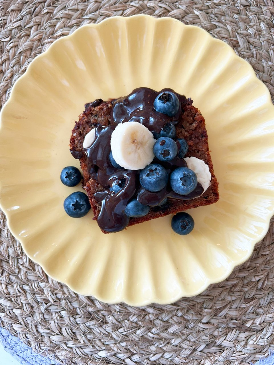 - Om de chocotrinisaus te bereiden: meng 2 schepjes NutriniDrink poeder met 1 tl cacoapoeder en 1 tl honing. Serveer dit over één plakje bananencake.
