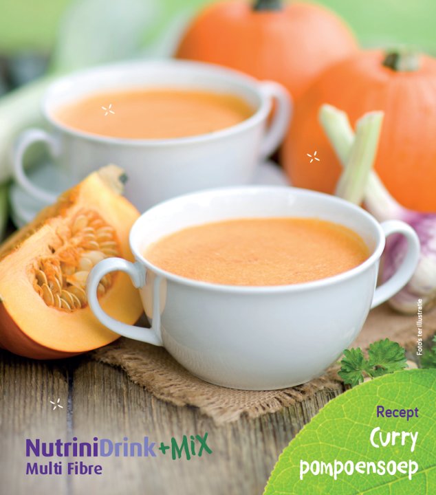 - Voeg 100 ml NutriniDrink +Mix Multi Fibre toe aan 1 portie soep.