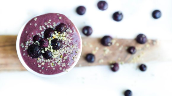 1. Doe de KetoCal 4:1 LQ vanille, blauwe bessen en de ijsklontjes in een blender.